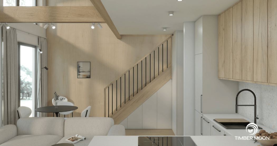Dom szkieletowy Timber Moon model 127 to idealna propozycja dla osób poszukujących przestronnego, komfortowego i funkcjonalnego domu. Duży metraż – aż 127 m² – zapewnia przestrzeń do życia, odpoczynku i wspólnego spędzania czasu dla całej rodziny. Dzięki przemyślanemu układowi pomieszczeń, każdy członek rodziny znajdzie tu swoje miejsce. Wiele osób wybiera nasz dom modułowy model 127 ze względu na funkcjonalność i ergonomię wnętrza.