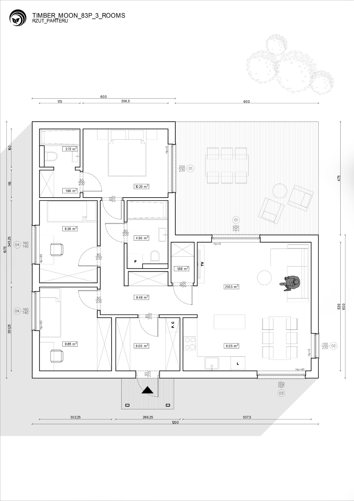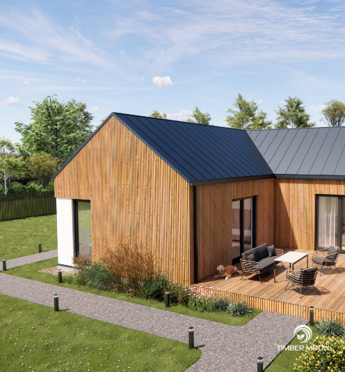 Dom drewniany Timber Moon 83P w wersji Standard to propozycja dla osób, które szukają wygodnego, funkcjonalnego i estetycznego domu parterowego.